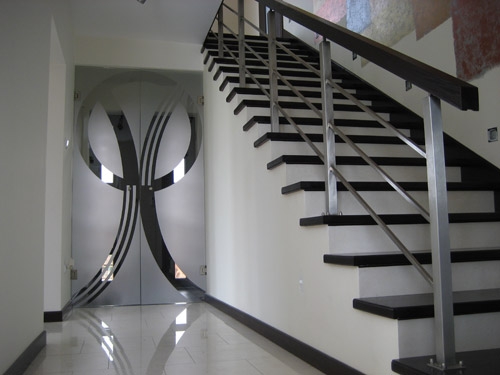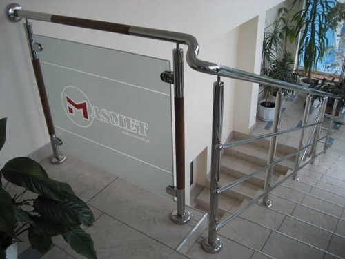 balustrada nierdzewna z drewnem i szkłem